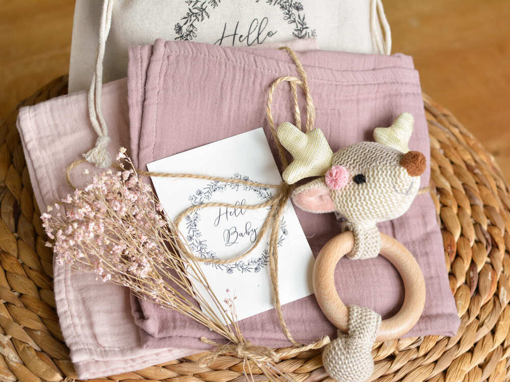 Kleines Geburtsgeschenk – Set Greifling Reh