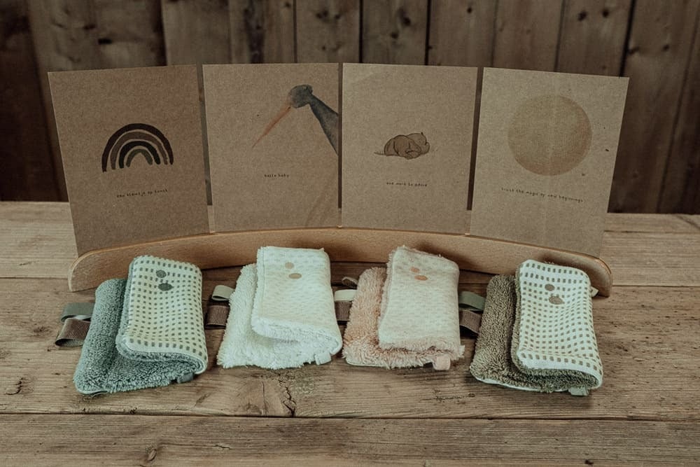 Sinnvolle Baby Geschenksets zur Geburt, nachhaltige Babygeschenke für Taufe, Babyparty und Zwillingsgeschenke, liebevoll verpackt mit persönlicher Grußkarte.